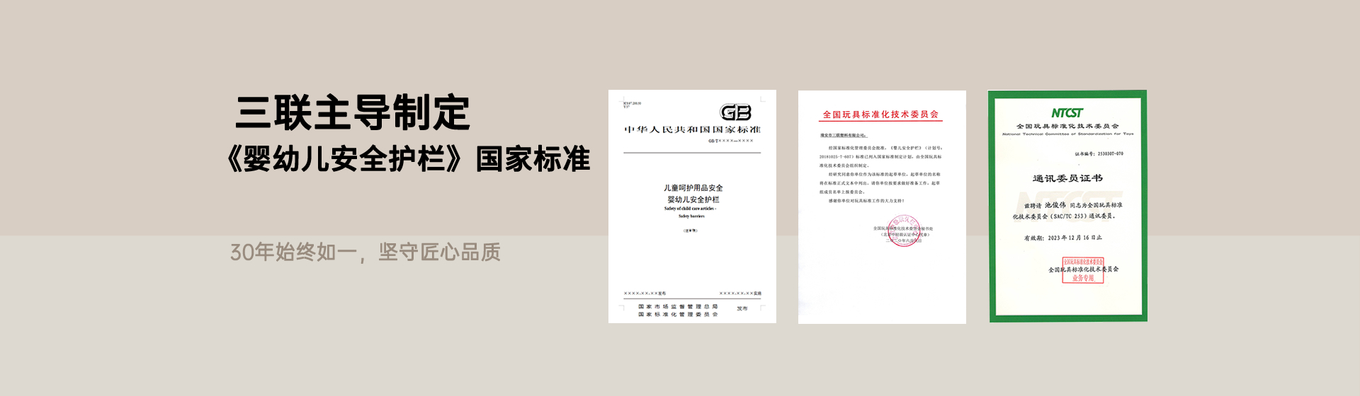 ? ? ? ? 近日,國(guó)家市場(chǎng)監(jiān)督管理總局、國(guó)家標(biāo)準(zhǔn)化管理委員會(huì)發(fā)布中華人民共和國(guó)國(guó)家標(biāo)準(zhǔn)公告(2025 年第 24 號(hào)),由瑞安市三聯(lián)塑料有限公司作為第四起草單位、公司產(chǎn)品經(jīng)理池俊偉擔(dān)任起草人的國(guó)家標(biāo)準(zhǔn)《兒童呵護(hù)用品安全 嬰幼兒安全護(hù)欄》(GB/T 46508-2025)正式獲批發(fā)布,并將于 2026 年 11 月 1 日起全面實(shí)施。這一標(biāo)準(zhǔn)的出臺(tái),不僅填補(bǔ)了當(dāng)前嬰幼兒圍欄類目缺乏統(tǒng)